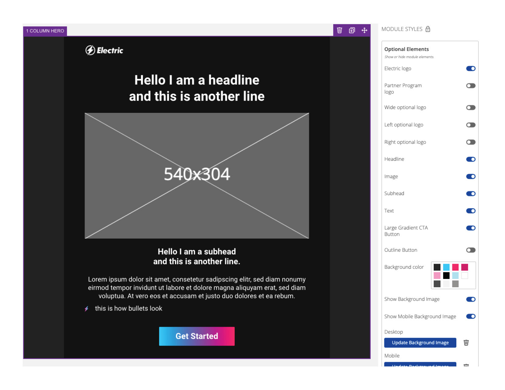 Being limited in our Stensul plan to ten modules (plus dividers) presented a challenge that forced strategic thinking about what options and elements could be combined and toggled to give the design team as much flexibility as possible without overwhelming the project managers when they were doing the initial build.