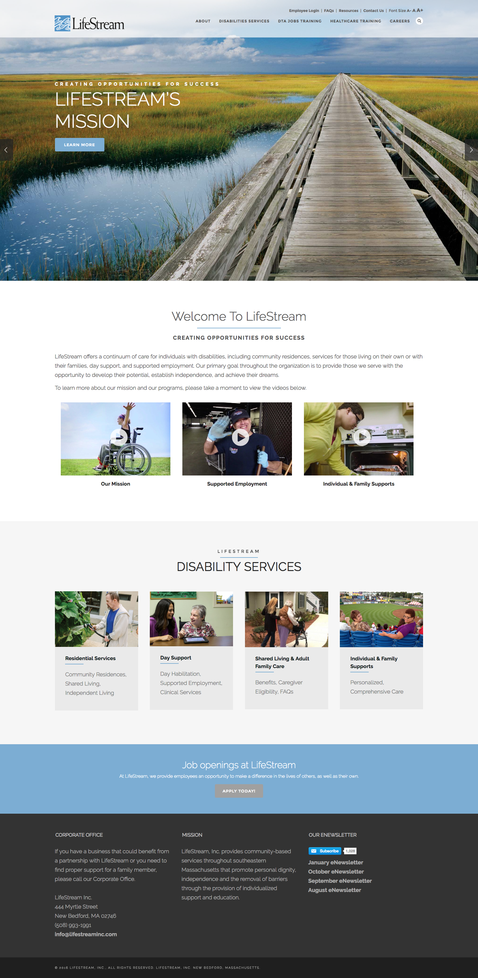 LifeStream needed a multi-lingual and responsive website that conveyed their core competencies in an approachable and positive atmosphere. The site is also a key component in their constant drive to find qualified employees. A password restricted section for employee information is another key component.